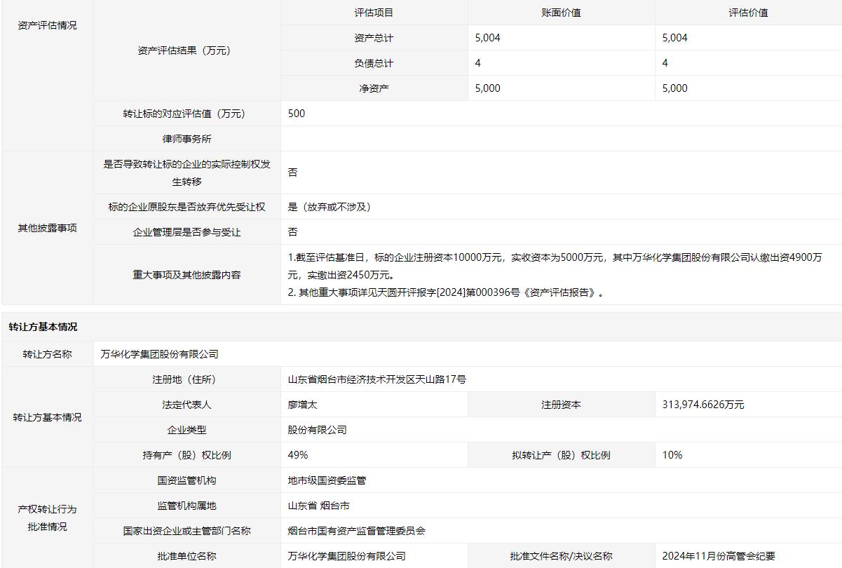 轉(zhuǎn)讓方:萬華化學集團股份有限公司