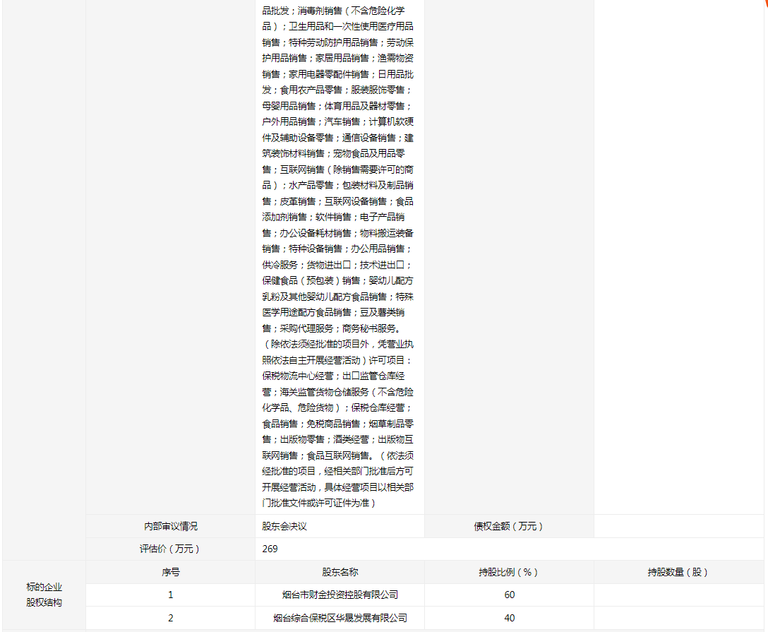 煙臺(tái)保稅開發(fā)投資有限公司16%國有股權(quán)