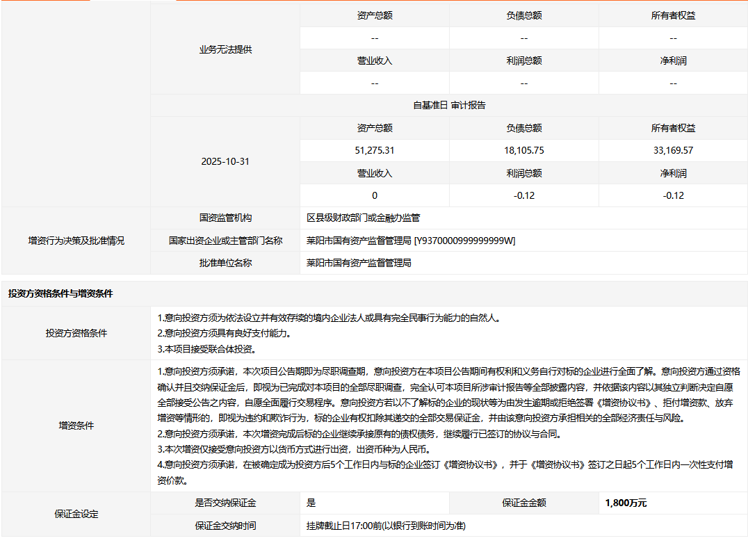 - 轉(zhuǎn)讓方:萊陽市南泗莊水庫投資開發(fā)有限公司