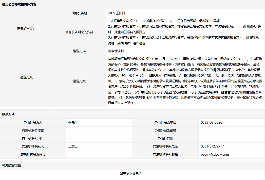萊陽市南泗莊水庫投資開發(fā)有限公司增資擴(kuò)股