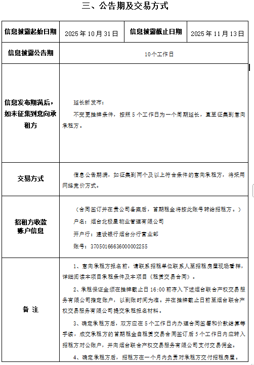 掛牌起止日期:2025年10月31日-2025年11月13日